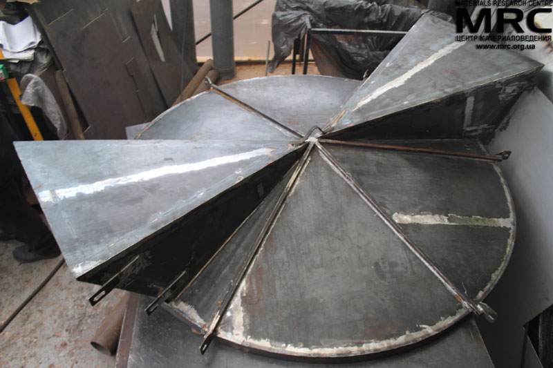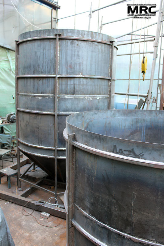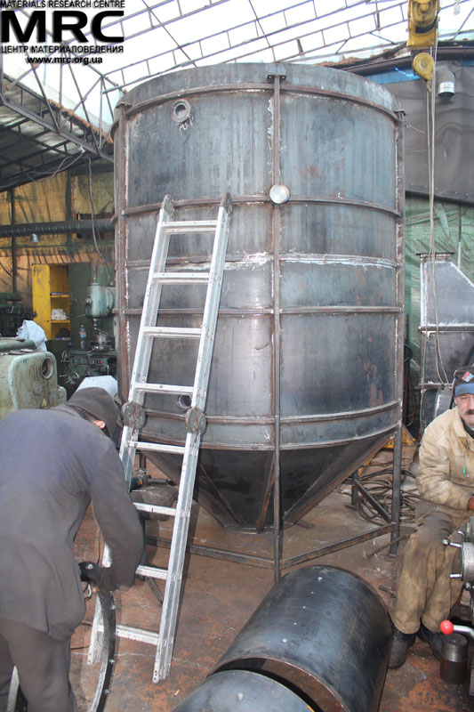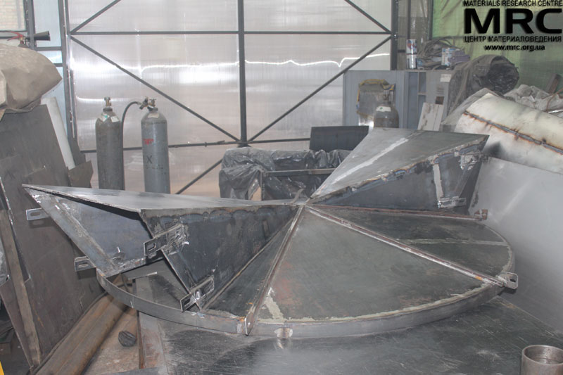 Metal cutting, rolling out of sheets, welding and assembly. Outer casing of the hopper , manufacturing observation windows and spouts.