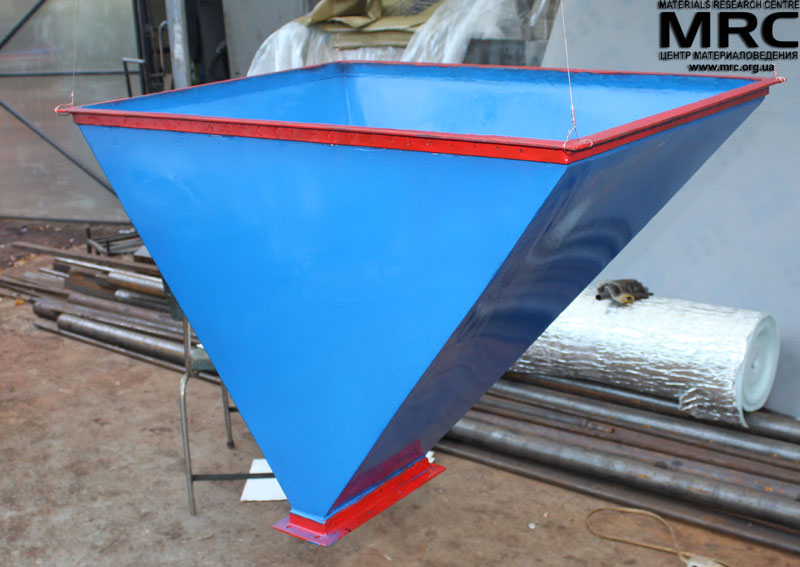 Design characteristics: Metal welded corpus of the bin is of open type. The bin has been performed with a discharge lower opening. At the bottom the bin connects to a screw feeder.