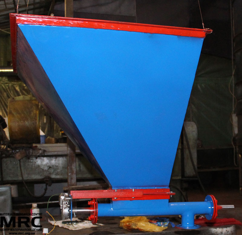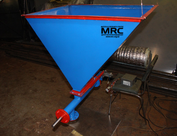 Application requirements: Receiving bin for feeding bulk material in a technological line, operates with capacity of 10 kg / hour.