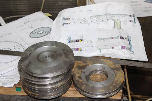 Manufacturing of the screw feeders parts, photos by Materials Research Centre.