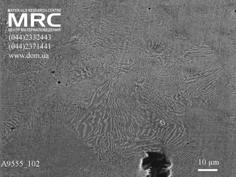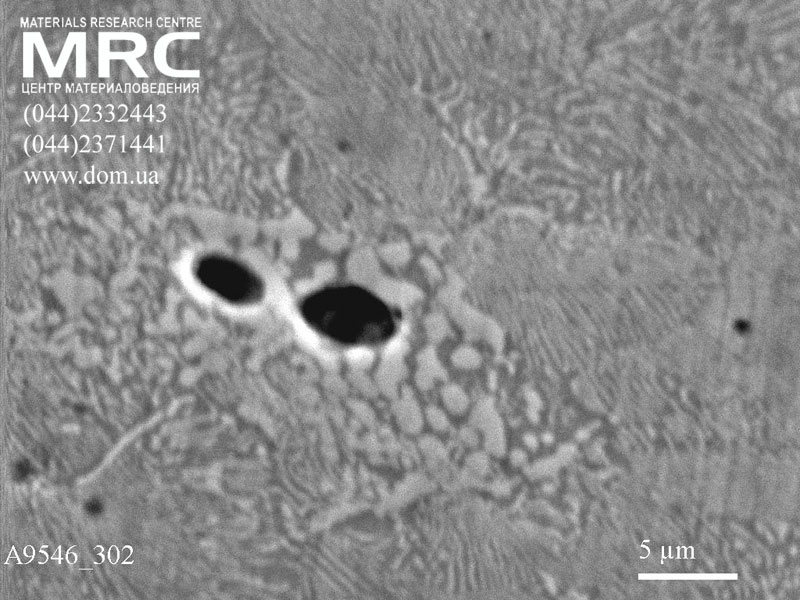 Травленный шлиф показывает, что основной составляющей структуры является пластинчатый перлит с толщиной пластин порядка 0,5-1 мкм. Мелкозернистая, достаточно однородная структура (рис. 2). Много включений шаровидного графита. Есть небольшие остатки эвтектических колоний, но без особо крупных зерен цементита.