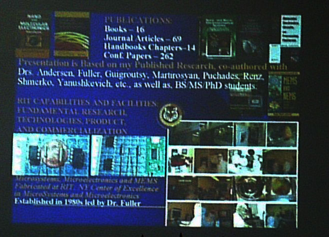 Часть доклада и семинара была посвящена применению MEMС, микросистем и нанотехнологий в странах с высоко развитыми аэрокосмической, автомобильной и военной отраслями ;энергетикой и электромеханическими системами, микроэлектроникой и робототехникой.